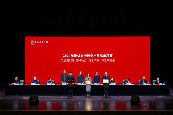 干武東表示,當(dāng)前高校正處在加快轉(zhuǎn)型升級、奮力推進高質(zhì)量發(fā)展的歷史機遇期,高等教育面臨著教育國際化新趨勢、特色發(fā)展新格局,以及新型教育生態(tài)重構(gòu)的機遇與挑戰(zhàn)。面對新形勢、新任務(wù),他提出,做好2025年工作的總體要求是:堅持以習(xí)近平新時代中國特色社會主義思想為指導(dǎo),全面落實習(xí)近平總書記關(guān)于教育的重要論述和全國教育大會精神,以立德樹人為根本,以學(xué)科建設(shè)為龍頭,以人才培養(yǎng)為中心,以藝術(shù)創(chuàng)演為主線,堅持以改革創(chuàng)新激發(fā)新活力,以高水平開放拓展新空間,大力推進學(xué)校高質(zhì)量內(nèi)涵式發(fā)展,加快“高水平一流”音樂學(xué)院建設(shè),不斷增強服務(wù)國家戰(zhàn)略和區(qū)域經(jīng)濟社會發(fā)展的能力。要突出聚焦的重點工作:一是堅持育人本位,加快形成教學(xué)科研創(chuàng)作表演四位一體工作體系。要堅持以教學(xué)、科研為主體,以創(chuàng)作、表演為兩翼,積極打造教學(xué)、科研、創(chuàng)作、表演四位一體發(fā)展模式。二是堅持人才強校,加快打造國內(nèi)音樂藝術(shù)人才集聚高地。要按照省委省政府關(guān)于“三支隊伍”建設(shè)要求,扎實推進“3343”人才工作體系,鍛造政治過硬的干部隊伍、建設(shè)德才兼?zhèn)涞娜瞬抨犖?、培養(yǎng)師德高尚的教師隊伍。三是堅持綜合改革,加快推進學(xué)校治理體系和治理能力現(xiàn)代化。要以二級管理改革為撬點,不斷完善管理體制;以制度建設(shè)為支點,加快健全保障體系;以潛力拓展為增點,深度挖掘資源保障;以平安校園建設(shè)為基點,全面夯實發(fā)展根基。四是堅持黨建引領(lǐng),持之以恒推進全面從嚴治黨向縱深發(fā)展。要找準(zhǔn)黨建與事業(yè)高質(zhì)量發(fā)展的結(jié)合點、發(fā)力點,堅持政治統(tǒng)領(lǐng),堅決貫徹落實上級決策部署;堅持全面從嚴,擰緊壓實責(zé)任鏈條;堅持黨建賦能,深入推進“黨建強音”專項行動,真正實現(xiàn)以改革促發(fā)展、以發(fā)展強黨建。最后,他希望每位浙音人要善于學(xué)習(xí)研究,提升自身能力;要學(xué)會借勢借力,形成工作合力;要擺脫路徑依賴,勇于改革創(chuàng)新,以“開局即開跑”的奮進姿態(tài)抓實抓好各項工作,奮力譜寫新的篇章。