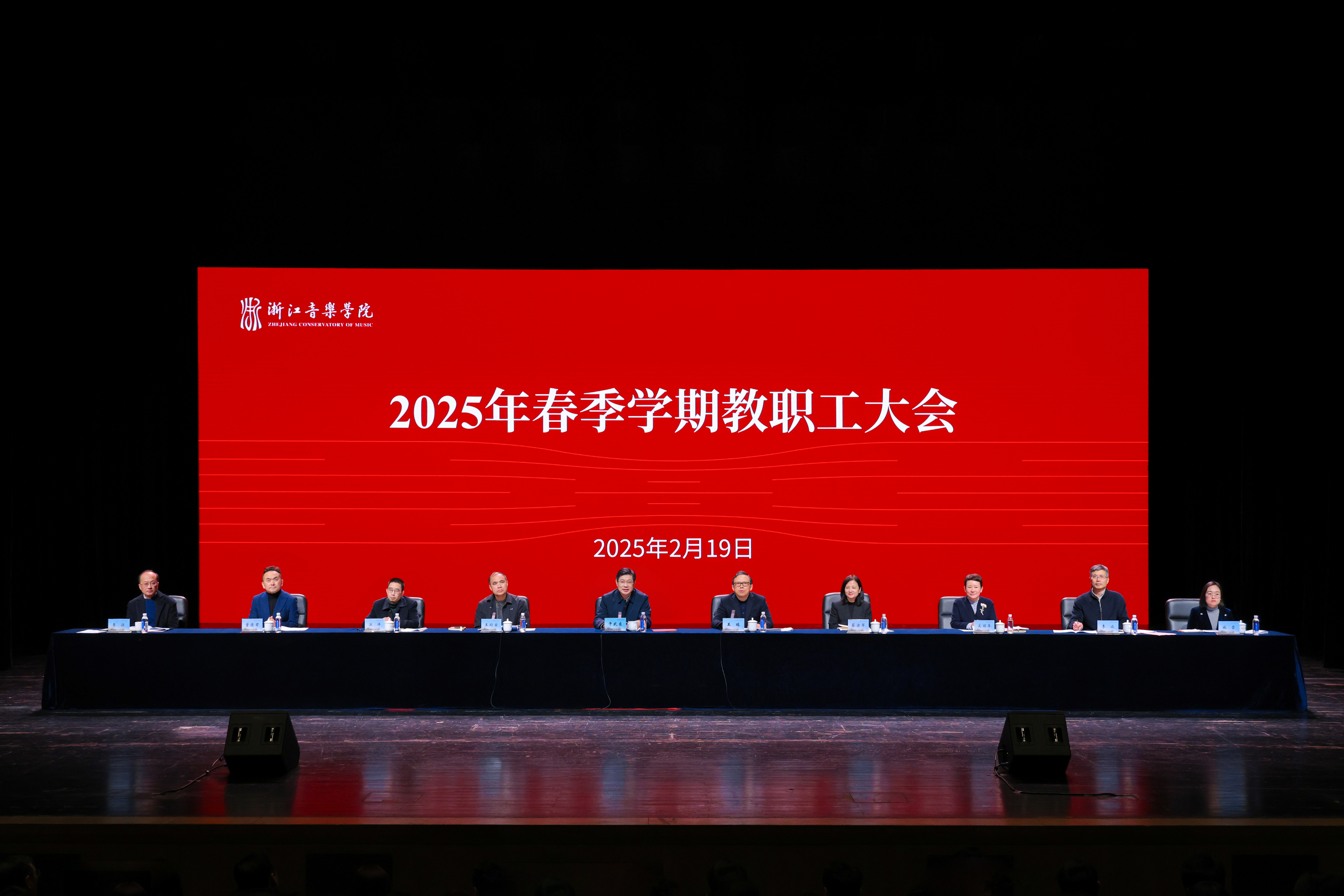 作者:孟欣 來源:辦公室、宣傳部 發(fā)布時間:2025-02-202月19日下午,浙江音樂學(xué)院2025年春季學(xué)期教職工大會在大劇院舉行。會議全面總結(jié)學(xué)校2024年工作,系統(tǒng)部署2025年重點任務(wù)。黨委書記干武東、院長王瑞分別講話,學(xué)校黨政領(lǐng)導(dǎo)班子成員出席會議。會議由黨委副書記王均寅主持。