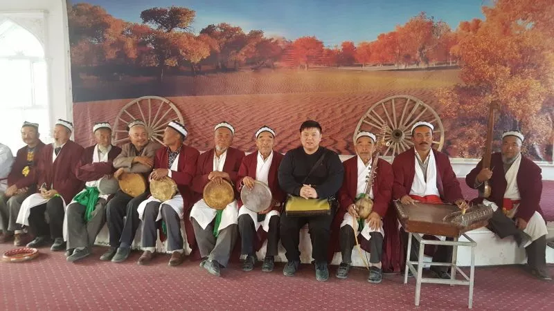 新疆采風期間,與木卡姆藝人合影