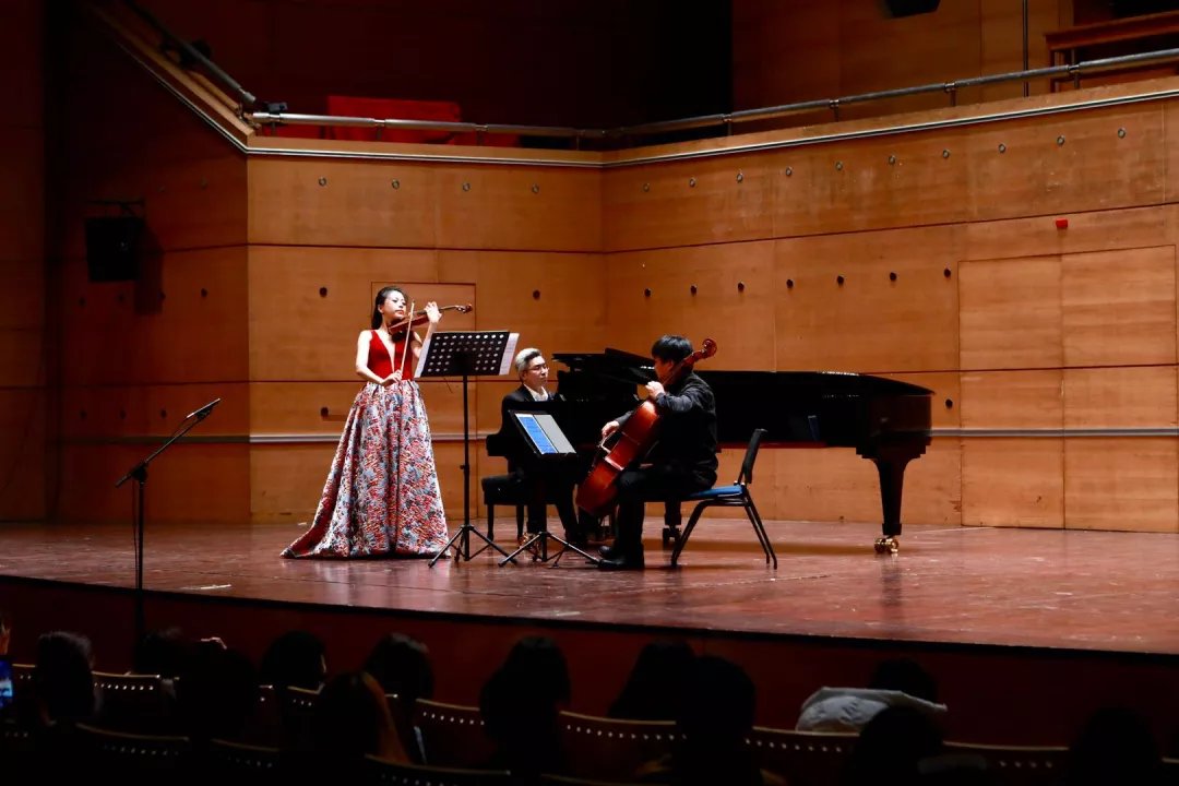 她曾在留學(xué)時期用小提琴演奏由中國傳統(tǒng)樂器馬頭琴演奏的《牧歌》,也曾以開設(shè)中國專場音樂會為媒介傳播中國文化,并且受到了當(dāng)?shù)厝嗣竦臍g迎。鐘易非用西洋樂器訴說中國故事的腳步從未停歇。近年,她幾度與作曲系張澤藝副教授合作,用三重奏的方式演奏中國元素的作品,在全國多個城市成功舉辦了國家藝術(shù)基金專場音樂會。