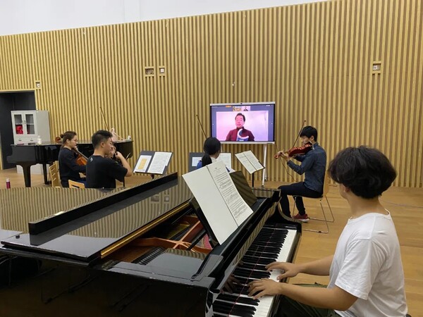 今年,室內(nèi)樂學院招收了來自全國各地的13名學生。就讀于美國曼尼斯音樂學院的大三學生邵潤澤,因為疫情無法前往美國進行當面授課,而室內(nèi)樂學院提供了一個很好的機會。“這近兩個月的學習讓我學會了如何更高效且合理地安排時間,如何不被緊密的排練、上課和演出壓垮,而是在不斷地激發(fā)音樂熱情。與同學在音樂里的交流,更是積累了一種奇妙的友情,這種友情是純粹的,因為經(jīng)過了音樂的淘洗,顯得更為冷靜、更為真誠。我們工作的時候,所有的個人偏見都被削去棱角而成為至高集體意識的一部分,此時再無個人與集體之分,所有的矛盾止步于音樂的理想國內(nèi)。”