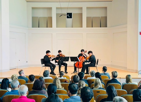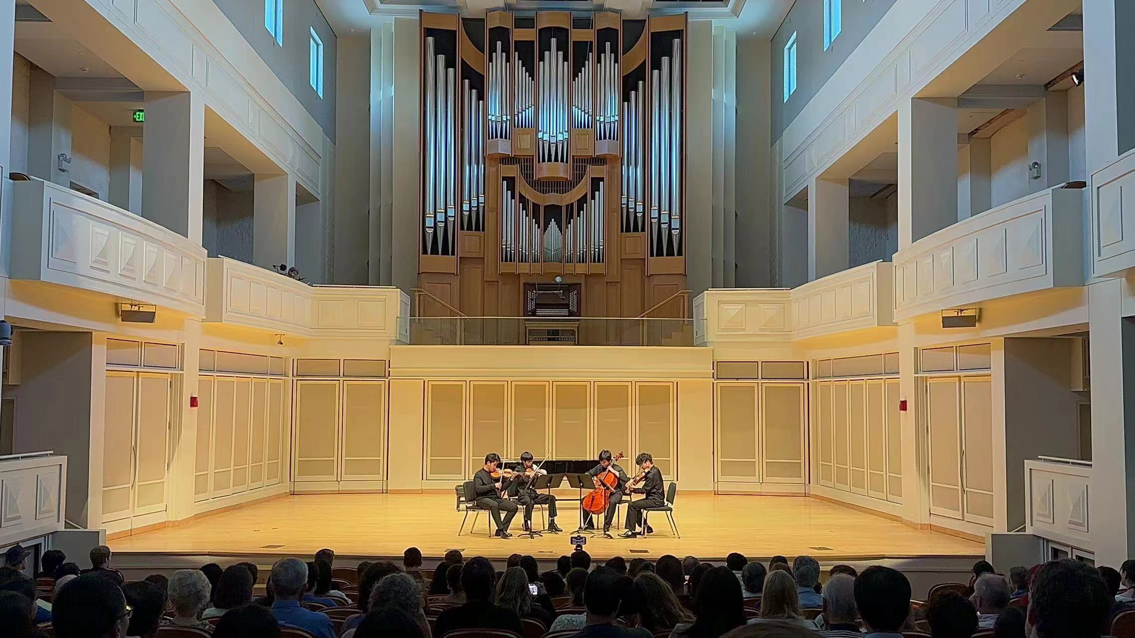 今年7月,作為浙音室內(nèi)樂學(xué)院首屆少年班學(xué)員的“繁星四重奏”(第一小提琴:徐朗奕,第二小提琴:黃紹煊,中提琴:范書銘,大提琴:趙憶南)赴美國參加由印第安納大學(xué)雅各布音樂學(xué)院舉辦的、為期一個月的夏季弦樂藝術(shù)節(jié)。此次交流不僅讓他們與來自世界各地的音樂大師面對面交流,更展示了浙音國際化辦學(xué)視野和室內(nèi)樂學(xué)院高級表演人才培養(yǎng)的成果。