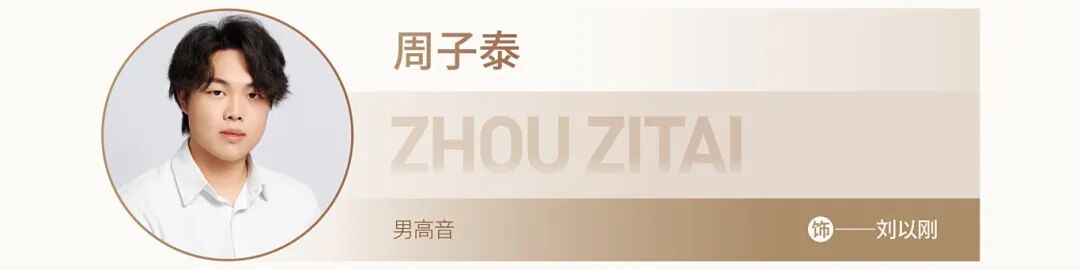 浙江音樂學(xué)院聲樂歌劇系2022級本科生,師從男高音歌唱家,浙江音樂學(xué)院聲樂歌劇系副教授劉偉老師,藝術(shù)指導(dǎo)鄒越老師。2024年考入浙江音樂學(xué)院歌劇學(xué)院。2023參演浙江音樂學(xué)院版歌劇《L’elisir D’amore》。2024參演浙江音樂學(xué)院版歌劇《圖蘭朵》,飾演PONG一角。