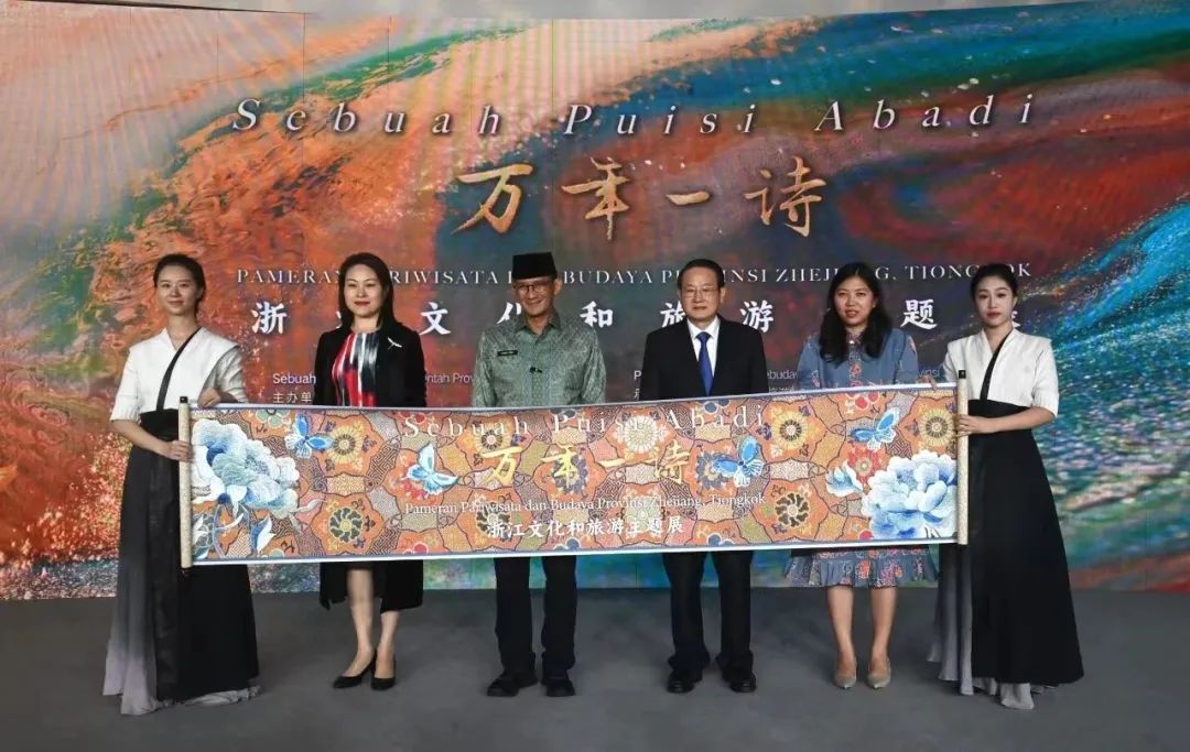 浙音師生此次隨浙江代表團(tuán)出訪印尼并亮相“萬年一詩”浙江文旅主題展開幕式,充分體現(xiàn)了學(xué)院近年來在學(xué)科建設(shè)、人才培養(yǎng)、精品創(chuàng)作等方面取得的突出成績,生動(dòng)詮釋了浙音師生深入學(xué)習(xí)貫徹習(xí)近平文化思想、習(xí)近平總書記考察浙江重要講話精神,積極打造浙江文藝精品創(chuàng)作高峰、主動(dòng)服務(wù)文化浙江建設(shè)和高水平對外開放的責(zé)任與擔(dān)當(dāng)。