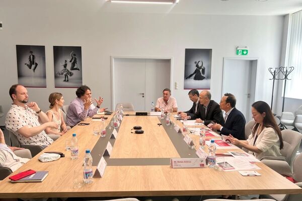 在匈牙利舞蹈教育的最高學(xué)府——匈牙利舞蹈藝術(shù)大學(xué),王瑞一行會見了校長瑪爾塔·福多內(nèi)·莫爾納爾(Márta Fodor-Molnár)和副校長西拉德·馬赫(Szilárd Macher)等人員,并觀看了芭蕾舞畢業(yè)生專場匯報(bào)演出。王瑞對該校的熱情接待和詳細(xì)介紹表示感謝,并指出,兩校在舞蹈學(xué)科專業(yè)設(shè)置上具有相似性、培養(yǎng)方式上具有互補(bǔ)性,建議啟動(dòng)學(xué)生交流和教師互訪合作,在增進(jìn)了解基礎(chǔ)上持續(xù)深化合作、建立友好長期合作機(jī)制。