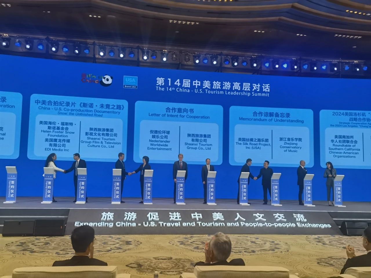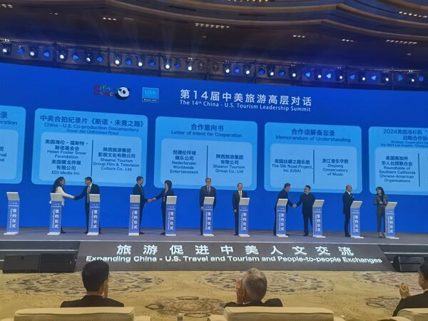 國務(wù)委員諶貽琴出席開幕式,宣讀習近平主席致本屆高層對話的信并致辭,美國商務(wù)部助理部長格蘭特·哈里斯宣讀美國總統(tǒng)拜登的致信并致辭,陜西省委書記趙一德致歡迎辭,文化和旅游部部長孫業(yè)禮主持開幕式并致辭。會議期間,中美雙方城市、機構(gòu)和企業(yè)簽署了25份合作備忘錄,旨在深化中美人員互訪,增加旅游流量,為兩國人文交流注入新動力。