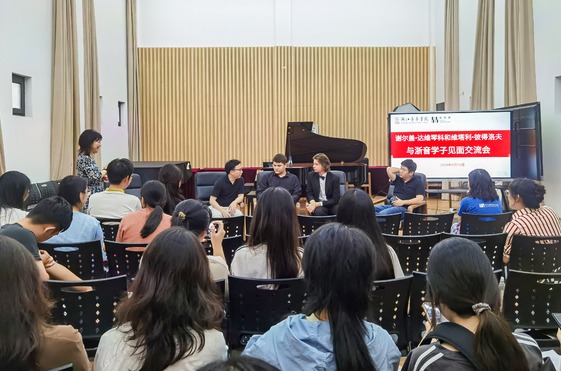 謝爾蓋·達(dá)維琴科暢談了自己關(guān)于音樂學(xué)習(xí)方面的感悟,并表示很榮幸受聘為浙音榮譽(yù)駐院青年藝術(shù)家。他會充分發(fā)揮自己的專業(yè)優(yōu)勢,與浙音師生開啟一場精彩的音樂旅程,共同為推廣和傳播鋼琴藝術(shù)貢獻(xiàn)力量。