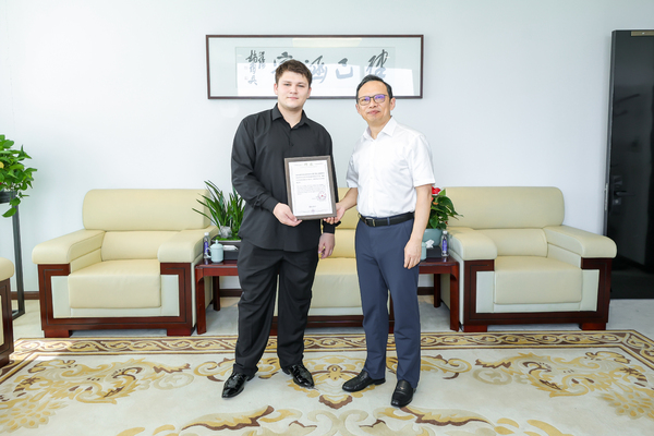 王瑞代表學(xué)校為謝爾蓋·達(dá)維琴科頒發(fā)榮譽(yù)駐院青年藝術(shù)家證書。