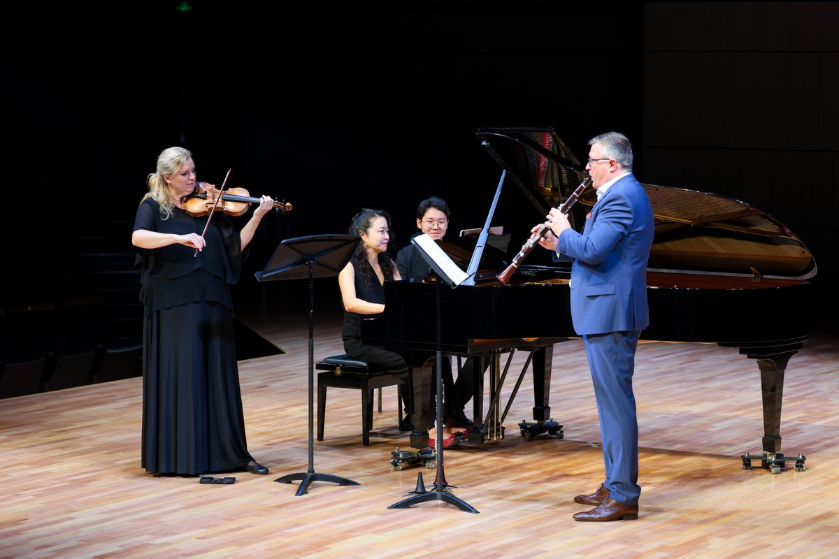 經(jīng)歷了一整天繁忙而充實的學(xué)術(shù)交流后,一場由中國與匈牙利音樂家聯(lián)袂呈現(xiàn)的交流室內(nèi)樂音樂會,為與會學(xué)者優(yōu)美詮釋了“聲氣相通,美美與共”的主題內(nèi)涵。在復(fù)調(diào)的交織中,柯達伊教學(xué)法倡導(dǎo)的“民族音樂作為母語”理念得到了藝術(shù)的印證——那些源自泥土的旋律,雖語言各異,卻共享著人類情感的共鳴;也讓在座學(xué)者親身感受到:當東方遇見西方、當傳統(tǒng)邂逅現(xiàn)代,音樂會成為最優(yōu)雅的橋梁,承載著文明的對話、通往心靈的和鳴。