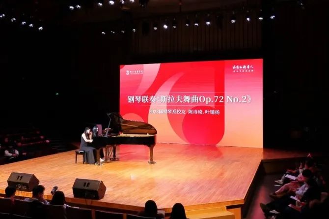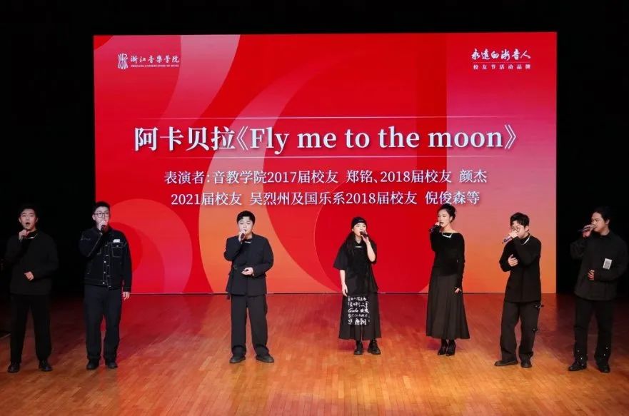 現(xiàn)場(chǎng),由20余位畢業(yè)校友與各院系在校生聯(lián)袂帶來(lái)精彩的文藝演出:歌劇詠嘆調(diào)《斗牛士之歌》、舞蹈《寒依疏影》、笛曲《扁舟載月》、鋼琴曲《斯拉夫舞曲Op.72 No.2》、歌曲《愛(ài)》、越劇《十八相送》、古箏《夢(mèng)回臨安》、阿卡貝拉《Fly me to the moon》......一出出精彩的節(jié)目承載著一段段美好的青春回憶,表達(dá)了校友們濃濃的愛(ài)校深情。