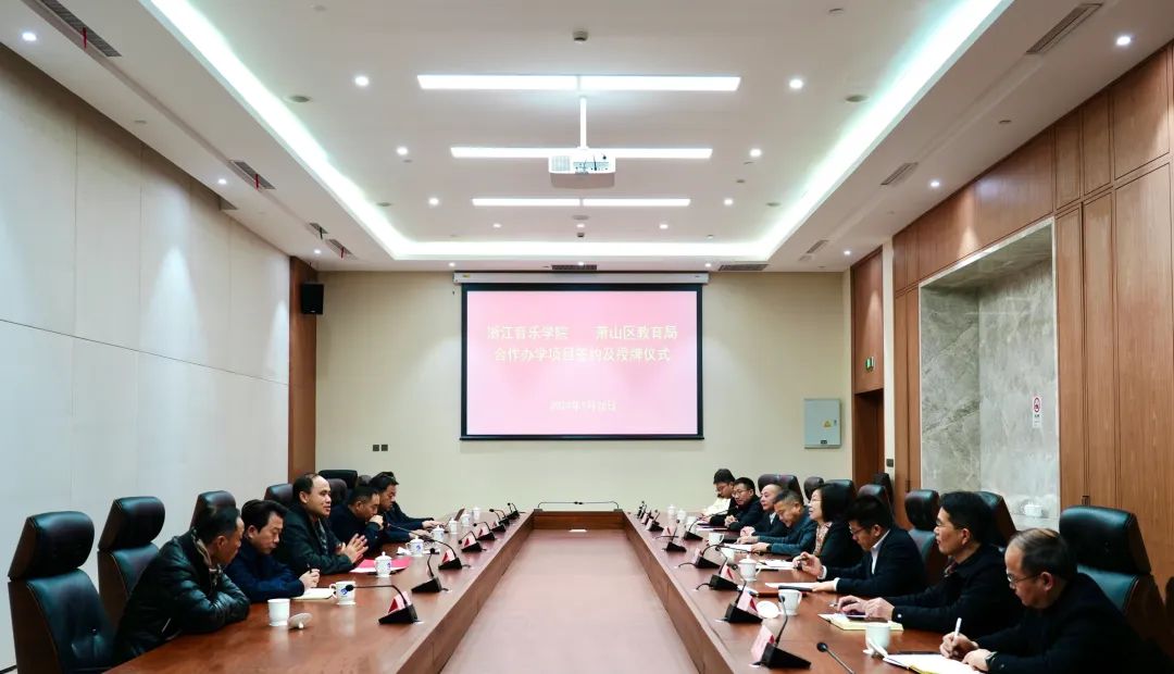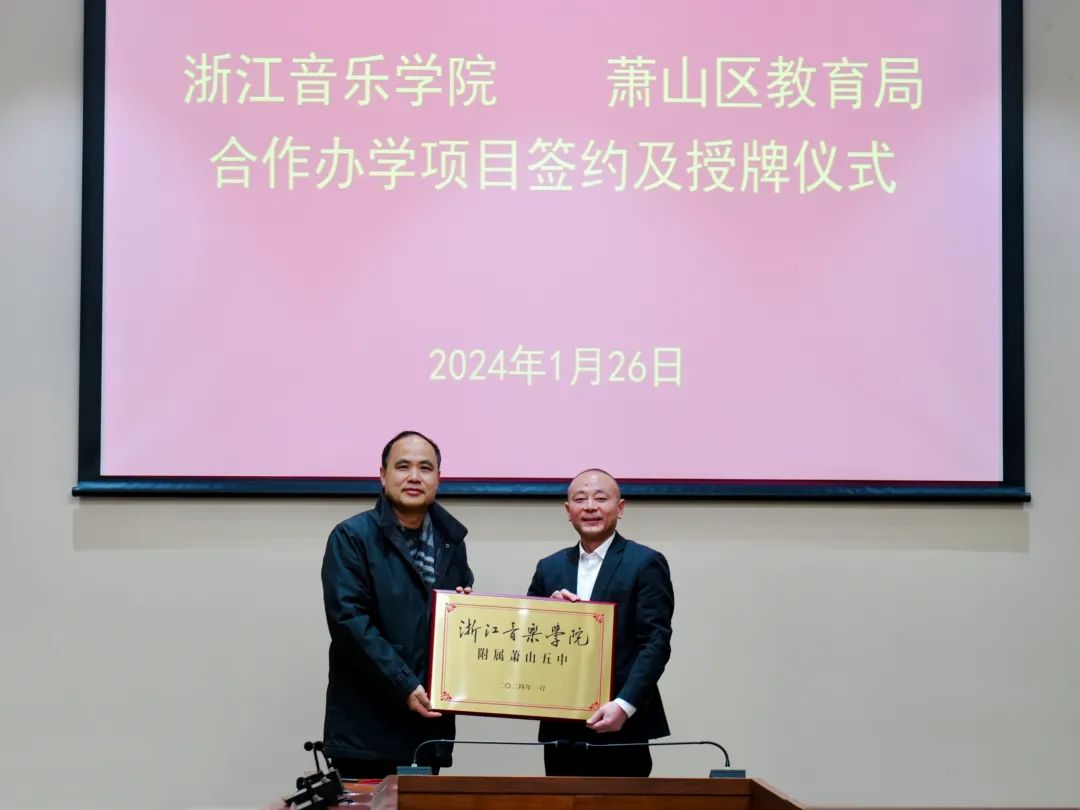 儀式上,雙方簽訂合作辦學(xué)協(xié)議,啟動“浙江音樂學(xué)院附屬蕭山五中”共建項目。王均寅為蕭山五中授牌。