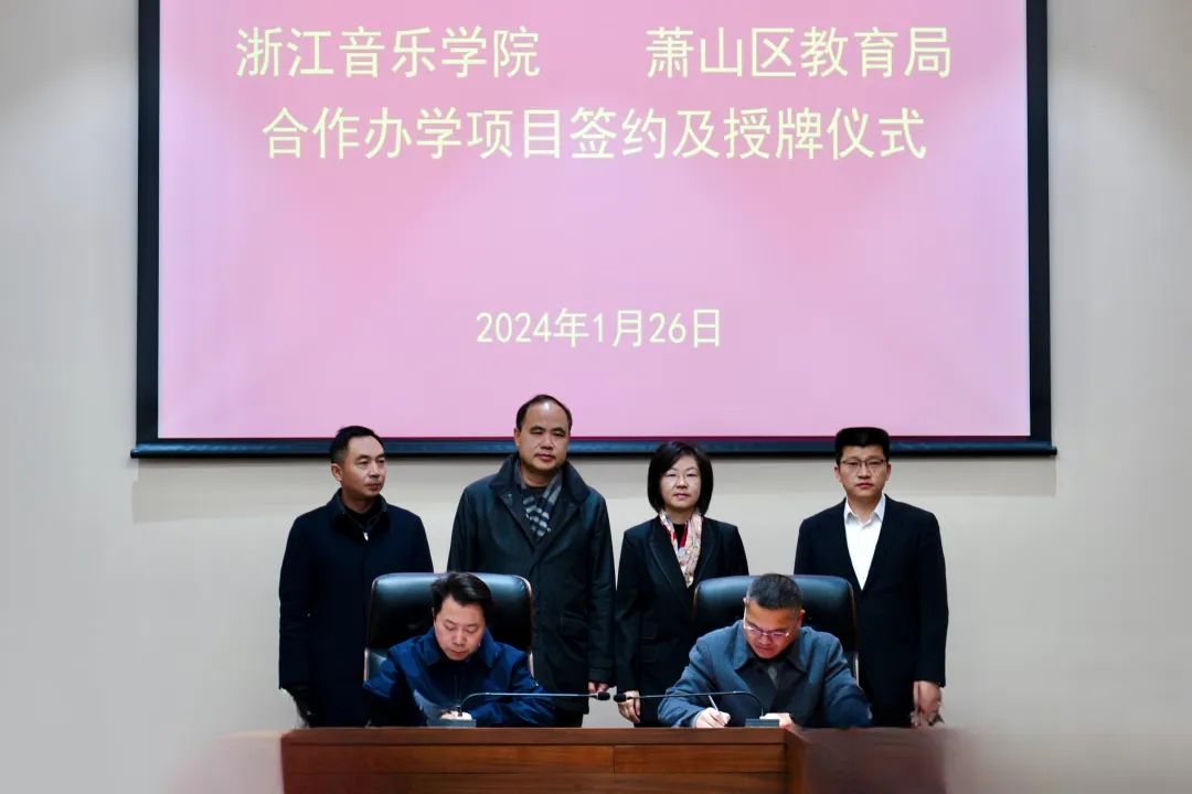 為全面貫徹落實習(xí)近平文化思想和習(xí)近平總書記考察浙江重要講話精神,加快推進高水平音樂學(xué)院建設(shè),加強高質(zhì)量藝術(shù)教育供給,助力共同富裕示范區(qū)和文化高地建設(shè),加快推動浙江音樂學(xué)院附屬音樂學(xué)校(即浙音附中)“1+X”集團化辦學(xué)進程,近日,學(xué)院與蕭山區(qū)教育局舉行合作辦學(xué)項目簽約。學(xué)院黨委副書記王均寅,蕭山區(qū)副區(qū)長楊新程,蕭山區(qū)教育局黨委書記、局長章建平,學(xué)院社會合作中心(校友辦)、附屬音樂學(xué)校以及蕭山區(qū)政府、區(qū)教育局、蕭山五中等單位負責(zé)人參加儀式。