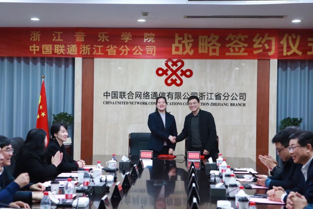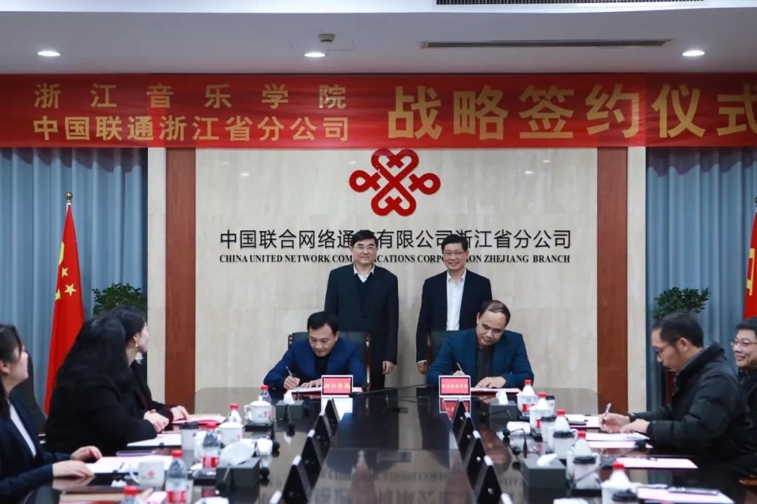 干武東在簽約儀式上致辭。他表示,浙江音樂學院正聚焦“高水平一流”音樂學院建設,大力推進數(shù)字化改革創(chuàng)新,此次合作是藝術(shù)與科技的聯(lián)姻,是以數(shù)字賦能推進現(xiàn)代大學治理和音樂人才培養(yǎng)的融合之舉、共贏之舉。他對合作提出四點意見:一是深化數(shù)字化改革領域合作,充分發(fā)揮聯(lián)通在數(shù)字信息基礎設施運營服務的平臺優(yōu)勢,以及在5G、云計算、大數(shù)據(jù)、物聯(lián)網(wǎng)、網(wǎng)絡安全等方面的技術(shù)優(yōu)勢,助力浙音數(shù)字化改革,構(gòu)建全量數(shù)據(jù)中臺,創(chuàng)新音樂教育數(shù)字化應用新場景;二是加強科研領域合作,推動數(shù)字音樂、文化大數(shù)據(jù)、算力和音樂人工智能等領域研究,夯實重點實驗室和產(chǎn)業(yè)學院等平臺建設,推動重大項目聯(lián)合申報和重大平臺共建,實現(xiàn)音樂工程學科領域技術(shù)創(chuàng)新與成果轉(zhuǎn)化;三是強化音樂內(nèi)容開發(fā)推廣,打造“音樂社區(qū)”“線上音樂會”等場景,推動浙音優(yōu)質(zhì)視聽資源下沉;深化教共體合作,搭建“快樂教室”場景,推動浙音網(wǎng)絡藝術(shù)課程與數(shù)字音樂資源的傳播推廣,并加強雙方在音樂品牌和文化演藝等領域合作;四是加強人才培養(yǎng)合作,利用聯(lián)通的平臺和資源,為浙音師生藝術(shù)實踐、學生實習創(chuàng)業(yè)就業(yè)等提供支持;加強各類人才培訓項目和聯(lián)通員工及子女美育教育等合作。