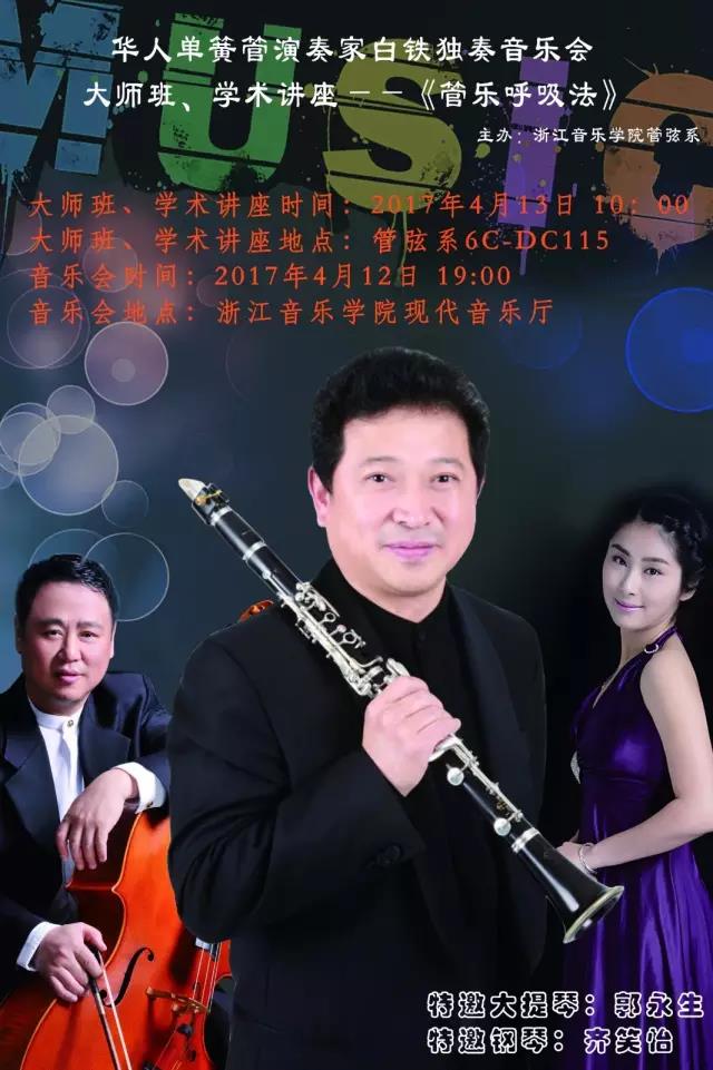 華人單簧管演奏家白鐵獨(dú)奏音樂慧、大師班、學(xué)術(shù)講座——《管樂呼吸法》