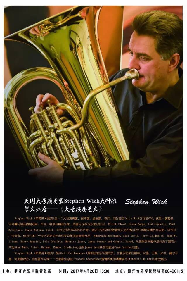 英國(guó)大號(hào)演奏家Stephen Wick大師班、 學(xué)術(shù)講座——《大號(hào)演奏藝術(shù)》