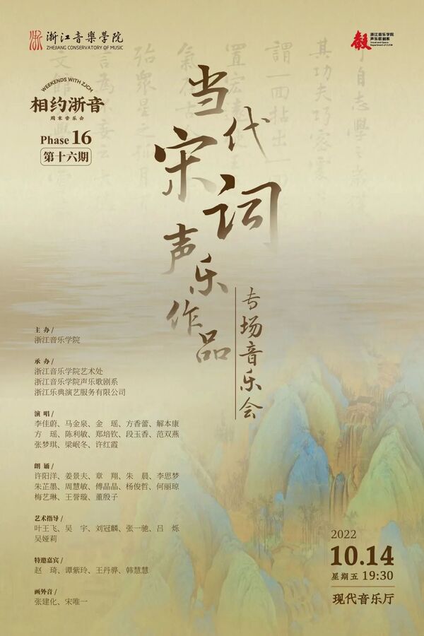 「相約浙音」周末音樂會 | 當代宋詞聲樂作品專場音樂會