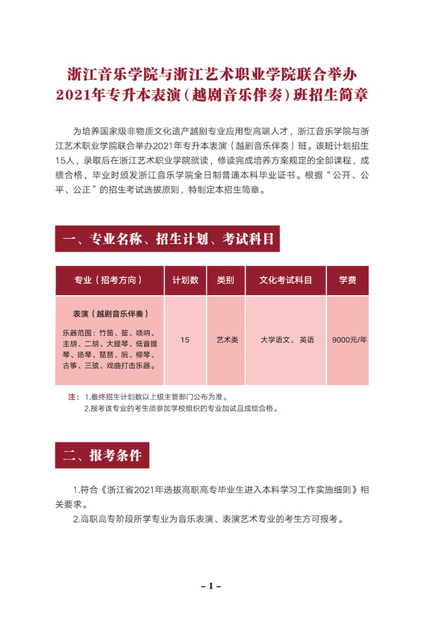 浙江音樂學(xué)院與浙江藝術(shù)職業(yè)學(xué)院聯(lián)合舉辦2021年專升本表演(越劇音樂伴奏)班招生簡章