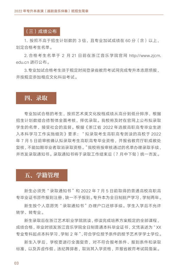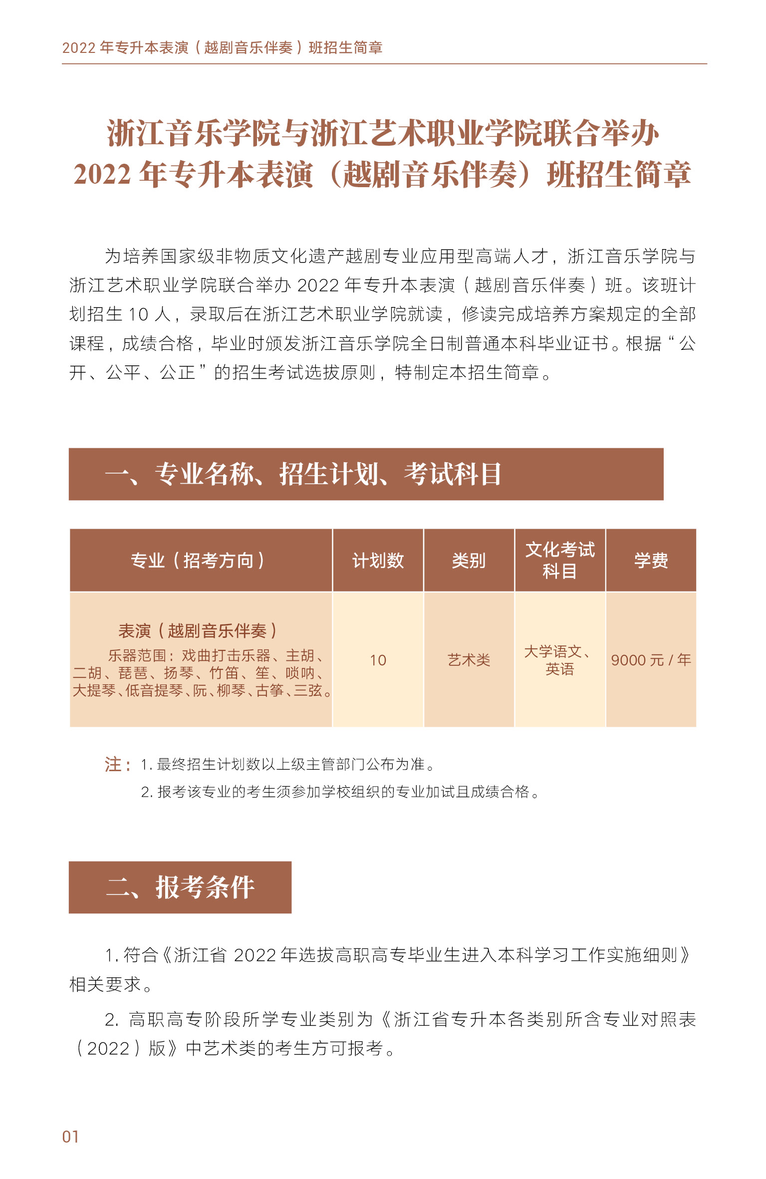 浙江音樂學院與浙江藝術(shù)職業(yè)學院聯(lián)合舉辦2022年專升本表演(越劇音樂伴奏)班招生簡章