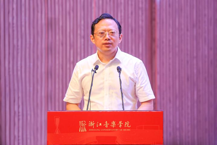 浙江省文化和旅游廳副廳長刁玉泉出席揭牌儀式并發(fā)表講話,高度評(píng)價(jià)了浙江音樂學(xué)院音樂教育系為浙江文藝事業(yè)的繁榮和音樂教育事業(yè)的發(fā)展做出的突出貢獻(xiàn)。他指出,這次音樂教育學(xué)院的更名轉(zhuǎn)設(shè),以及高等音樂教育研究所的同步設(shè)立,是浙音深入貫徹習(xí)近平總書記考察浙江重要講話精神和省委十四屆七次全會(huì)精神,立足“高水平一流”辦學(xué)目標(biāo),進(jìn)一步深化辦學(xué)體制改革,強(qiáng)化辦學(xué)內(nèi)涵建設(shè),加快推進(jìn)音樂教育學(xué)科專業(yè)更高質(zhì)量、更高水平發(fā)展的一項(xiàng)重要改革創(chuàng)新舉措。“每一次的變化對(duì)于音樂教育學(xué)院而言,都是一次全新的蛻變和升華。”刁玉泉表示,希望音樂教育學(xué)院能以更名轉(zhuǎn)設(shè)為新起點(diǎn),主動(dòng)擔(dān)負(fù)起中國高等音樂教育創(chuàng)新發(fā)展探路者、先行者的職責(zé)和使命,大力推進(jìn)音樂教育學(xué)學(xué)科的內(nèi)涵發(fā)展、特色發(fā)展和創(chuàng)新發(fā)展,為文化浙江建設(shè)和音樂教育事業(yè)發(fā)展培養(yǎng)更多更優(yōu)秀的音樂教育工作者,為打造“中國音樂教育學(xué)”學(xué)科體系提供浙音方案、浙音樣板。