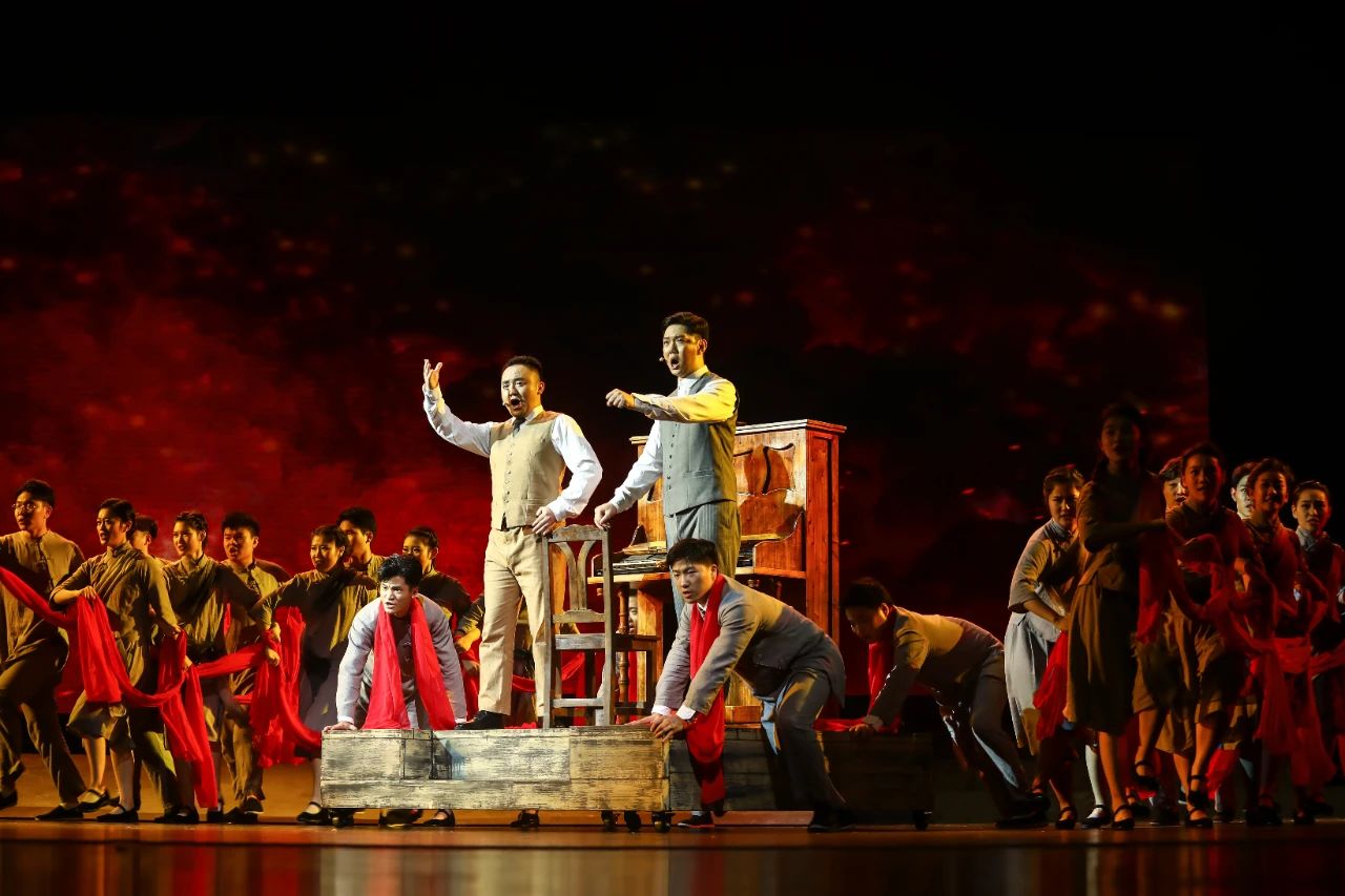 9月21日,浙江音樂學院首部原創(chuàng)歌劇《國之歌》(點擊頁末閱讀原文可觀看全?。┰谡憬魳穼W院大劇院上演,這部劇由浙音作曲、聲樂歌劇等多個專業(yè)的師生合作,講述了革命音樂家聶耳與田漢投身抗日洪流、積極創(chuàng)作《義勇軍進行曲》的感人故事。全劇音樂優(yōu)美,師生們表演真摯。劇終,當激昂振奮的國歌響起,全場響起熱烈的掌聲,觀眾們激動地起立與演員們放聲合唱。