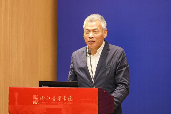浙江音樂學(xué)院校長王瑞在致辭中指出,“中國器樂表演藝術(shù)研究”是浙音第一個(gè)國家社科基金藝術(shù)學(xué)重大項(xiàng)目,該課題與浙音學(xué)科特色緊密相關(guān),也是近年來學(xué)校高度重視優(yōu)勢特色學(xué)科建設(shè),全力推進(jìn)科研工作高水平發(fā)展的一項(xiàng)重要成果。他指出,中國器樂以鮮明的音響性格、獨(dú)特的線性思維、點(diǎn)線結(jié)合的音樂形態(tài)、深邃的哲思意涵,創(chuàng)造了氣韻生動(dòng)、氣象萬千的藝術(shù)意境和美學(xué)品格,在世界音樂寶庫中獨(dú)樹一幟。開展對(duì)于中華文化的系統(tǒng)性研究是一項(xiàng)十分重要的基礎(chǔ)性意義。浙音將以“中國器樂表演藝術(shù)研究”這個(gè)課題為促進(jìn),統(tǒng)籌全國的人才、藝術(shù)、學(xué)術(shù)等資源,發(fā)揮浙音國樂系、民族樂隊(duì)學(xué)院的功能作用,舉全校之力,開展深層次和系統(tǒng)性的中國器樂表演研究以及創(chuàng)作研究、理論研究和教學(xué)研究,建構(gòu)具有中國風(fēng)格、中國氣派、中國審美的中國器樂表演藝術(shù)的學(xué)科體系、學(xué)術(shù)體系和話語體系,真正發(fā)揮推動(dòng)中國音樂藝術(shù)發(fā)展進(jìn)步的作用,在中國音樂與世界音樂的交流互鑒中展現(xiàn)中國文化的風(fēng)采。