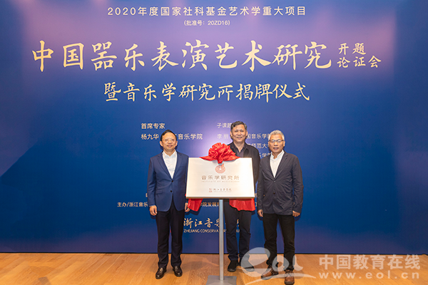 論證會之前,舉行了浙音音樂學(xué)研究所成立揭牌儀式。新成立的音樂學(xué)研究所將積極對標(biāo)建設(shè)國際一流高水平音樂學(xué)院,全力推進(jìn)包括“中國器樂表演藝術(shù)研究”2020年度國家社科基金藝術(shù)學(xué)重大項目在內(nèi)的重大科研項目的實施,更好地推動學(xué)校音樂學(xué)科發(fā)展與科研創(chuàng)新,構(gòu)建彰顯時代特征、適應(yīng)新時代音樂教育發(fā)展、與培養(yǎng)高素質(zhì)創(chuàng)新型音樂人才要求相適應(yīng)的學(xué)術(shù)科研機(jī)制。