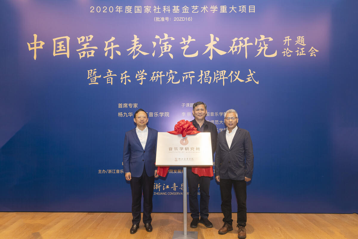 論證會(huì)之前,舉行了浙音音樂學(xué)研究所成立揭牌儀式。新成立的音樂學(xué)研究所將積極對(duì)標(biāo)建設(shè)國際一流高水平音樂學(xué)院,全力推進(jìn)包括“中國器樂表演藝術(shù)研究”2020年度國家社科基金藝術(shù)學(xué)重大項(xiàng)目在內(nèi)的重大科研項(xiàng)目的實(shí)施,更好地推動(dòng)學(xué)校音樂學(xué)科發(fā)展與科研創(chuàng)新,構(gòu)建彰顯時(shí)代特征、適應(yīng)新時(shí)代音樂教育發(fā)展、與培養(yǎng)高素質(zhì)創(chuàng)新型音樂人才要求相適應(yīng)的學(xué)術(shù)科研機(jī)制。