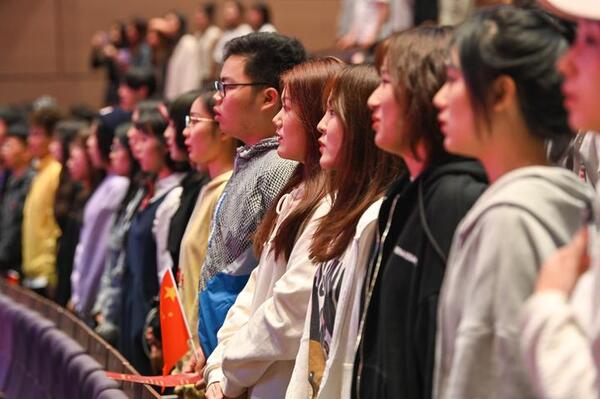 浙音師生齊唱《義勇軍進行曲》。