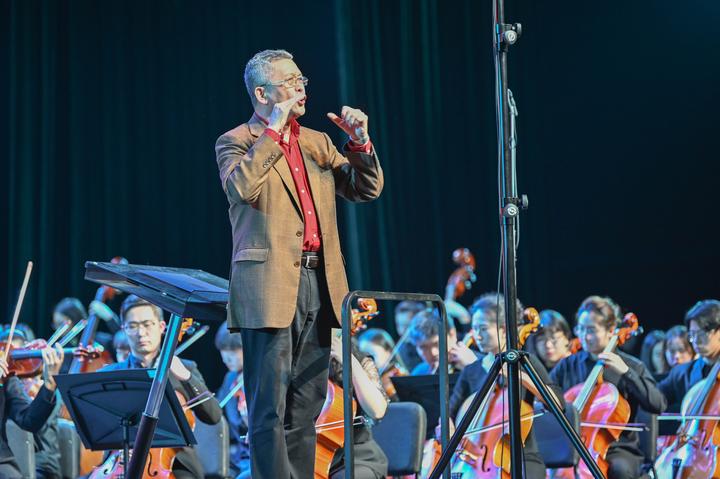 國家一級指揮于海為浙音師生在音樂廳里上思政課。