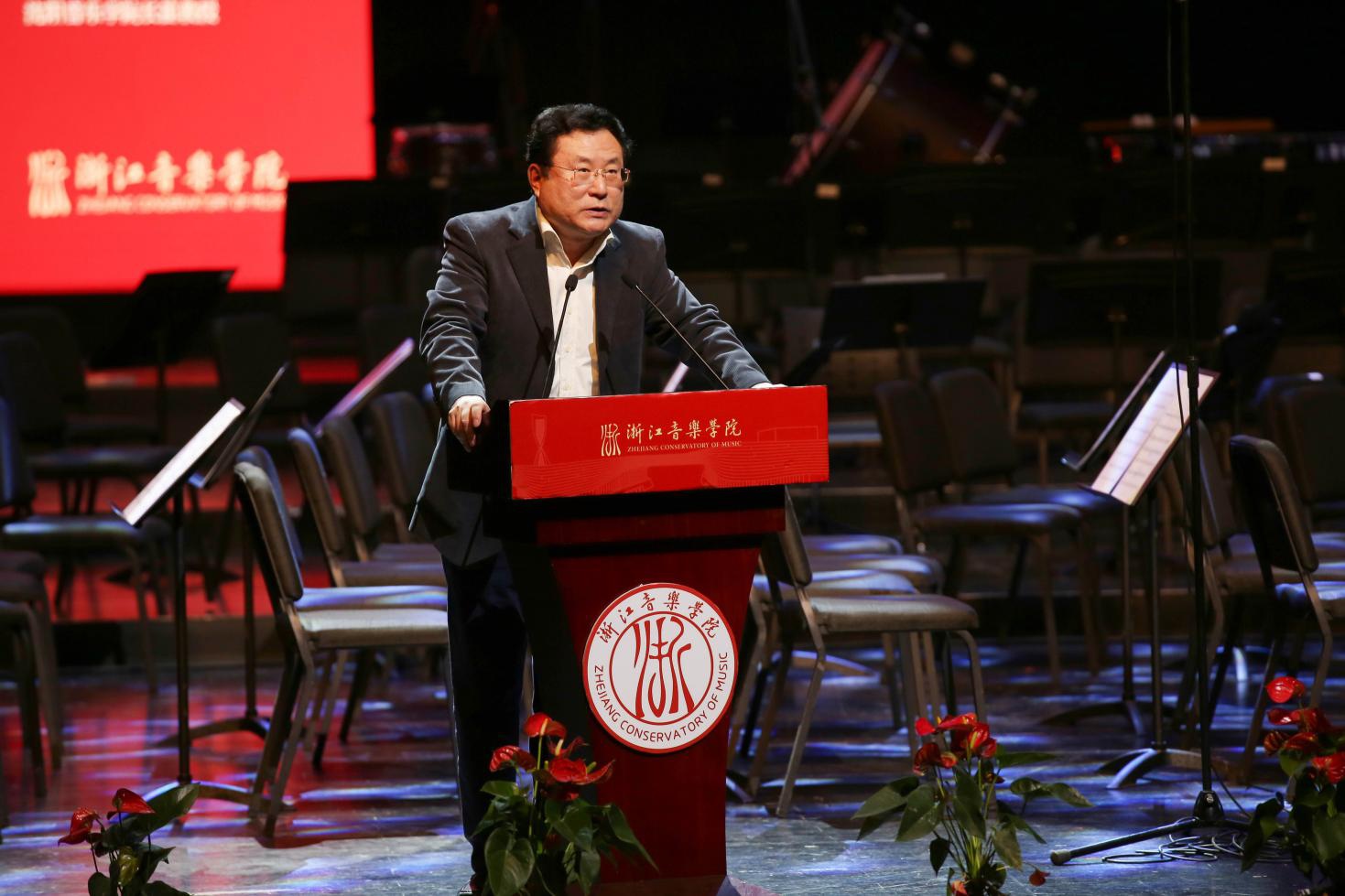 活動(dòng)邀請(qǐng)了中國(guó)音樂家協(xié)會(huì)管樂學(xué)會(huì)主席、國(guó)家一級(jí)指揮、中國(guó)人民解放軍軍樂團(tuán)原團(tuán)長(zhǎng)于海老師和中國(guó)音樂家協(xié)會(huì)管樂學(xué)會(huì)副主席、沈陽音樂學(xué)院原副院長(zhǎng)魏煌老師,為師生分別帶來題為《我們的國(guó)歌》和《我和我的祖國(guó)》兩場(chǎng)學(xué)術(shù)講座?;顒?dòng)現(xiàn)場(chǎng),浙江音樂學(xué)院校長(zhǎng)王瑞為于海頒發(fā)學(xué)??妥淌谄笗?。