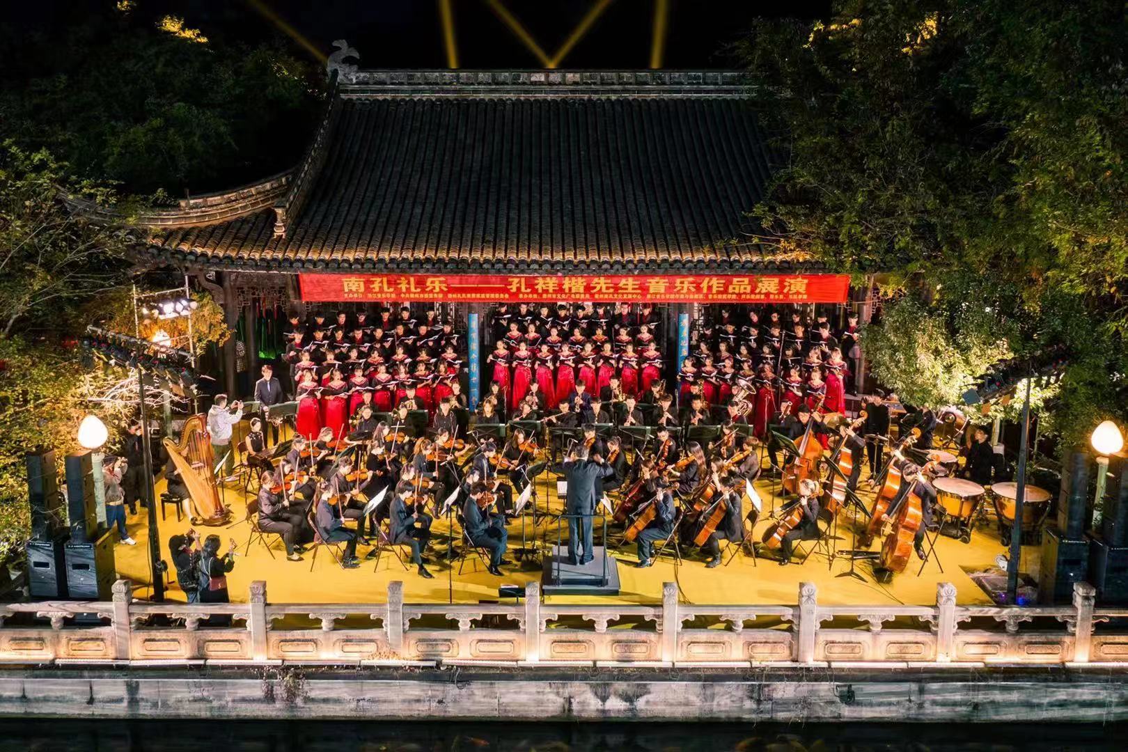 11月21日晚,美輪美奐的衢州孔氏家廟后花園迎來了浙江音樂學(xué)院的百余名師生和滿堂賓客,孔祥楷先生音樂作品展演在這里上演,以音樂帶領(lǐng)大家領(lǐng)略南孔文化和歷史,體驗中國傳統(tǒng)詩詞與西方交響樂碰撞產(chǎn)生的魅力。