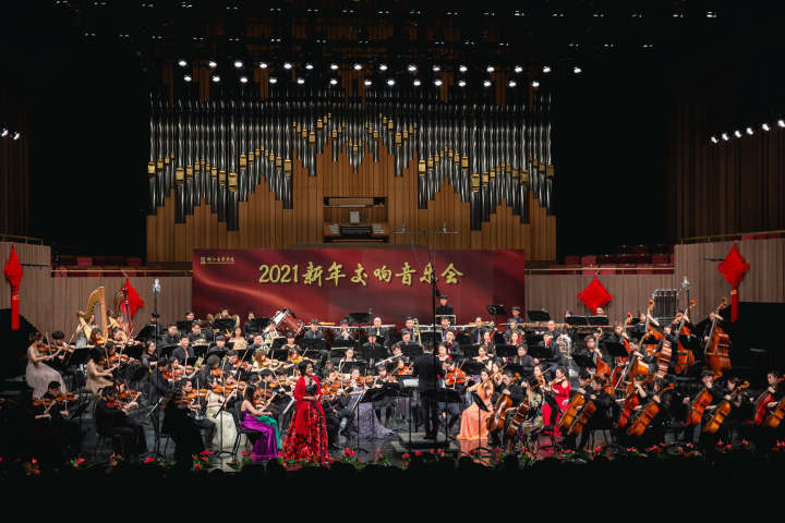 12月26日晚,浙江音樂學(xué)院2021新年交響音樂會(huì)在音樂廳隆重舉行,師生們以心為志,詠之歌之,用優(yōu)美恢弘的音樂,奏響“十四五”的盛世華章。此次新年交響音樂會(huì)由浙江音樂學(xué)院主辦,浙江音樂學(xué)院管弦系、樂隊(duì)學(xué)院承辦,樂隊(duì)學(xué)院藝術(shù)總監(jiān)胡詠言擔(dān)任指揮。