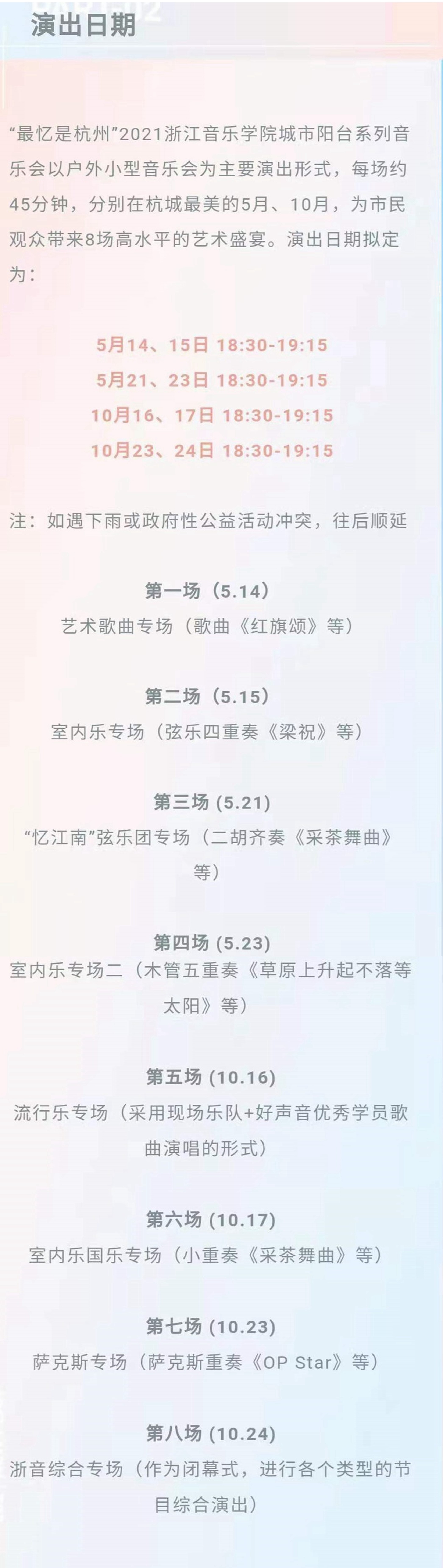 為充分發(fā)揮浙江音樂學(xué)院藝術(shù)教育優(yōu)勢(shì),讓高雅音樂貼近市民、走進(jìn)群眾,為浙江“重要窗口”建設(shè)貢獻(xiàn)力量,5月14日晚,由浙江音樂學(xué)院主辦,浙江廣播電視集團(tuán)音樂調(diào)頻協(xié)辦的“最憶是杭州”2021浙江音樂學(xué)院城市陽(yáng)臺(tái)系列音樂會(huì),在杭州的地標(biāo)性現(xiàn)代城市公園“城市陽(yáng)臺(tái)”拉開序幕。