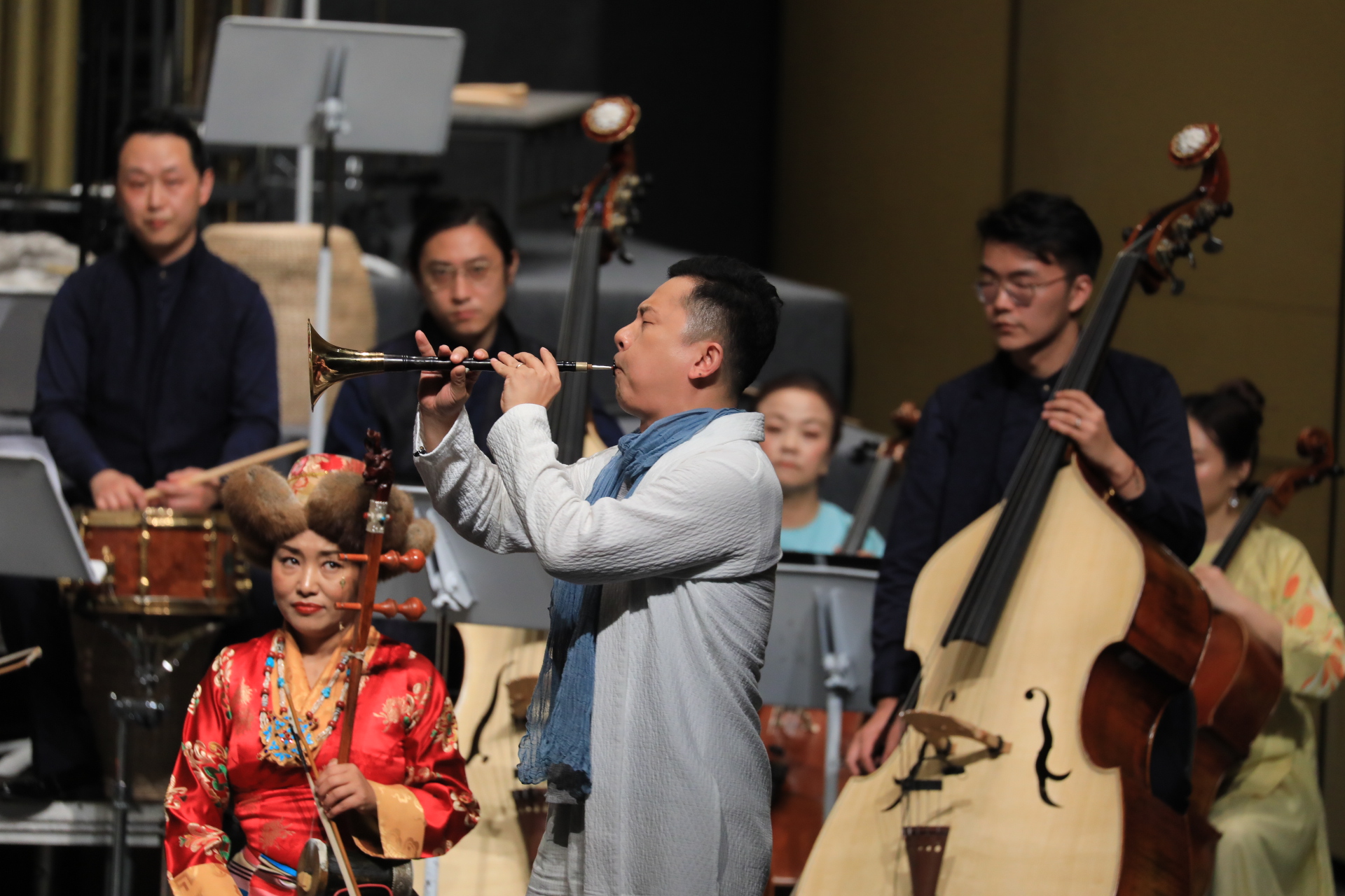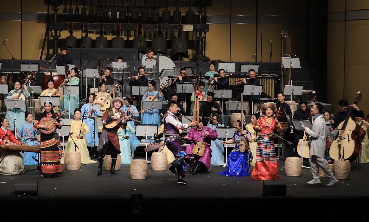 《納百川》中,十余種不同民族的特色樂器嗩吶、伽倻琴、篳篥、冬不拉、彝族四弦琴、蘆笙、薩塔爾、弦子、馬頭琴、長鼓、手鼓等輪番上陣,彰顯中華民族寬廣的胸襟和視野;