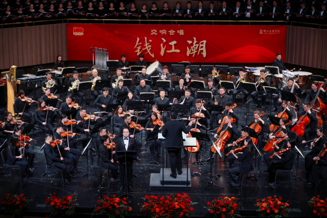 錢江奔涌,江山多嬌,在浙江廣袤的土地上,中國共產(chǎn)黨的百年輝煌從這里起步,無數(shù)風流人物和激昂故事輪番在這里登場。5月28日晚,由浙江音樂學院傾情打造的交響合唱《錢江潮》在學院音樂廳精彩上演。這是浙江音樂學院為慶祝中國共產(chǎn)黨成立100周年而力推的一臺大型原創(chuàng)音樂作品,浙音師生聯(lián)合杭州愛樂樂團,立足錢江大地百年潮涌和紅色故事,為廣大觀眾合力奉上了一場技藝精湛、氣勢恢宏的藝術(shù)精品。