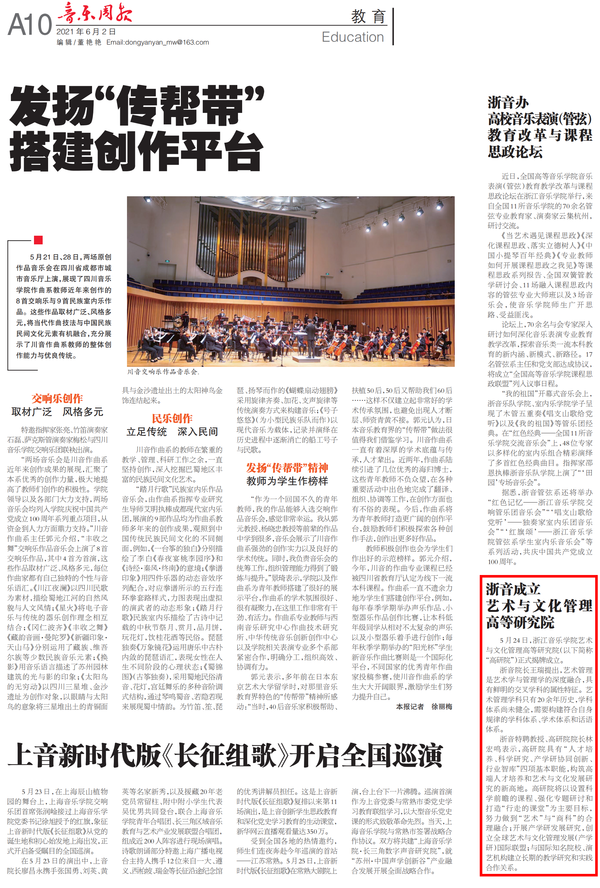 音樂周報:浙音成立藝術(shù)與文化管理高等研究院