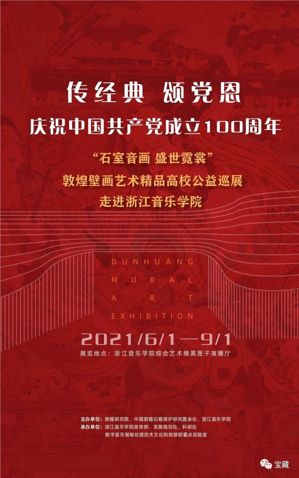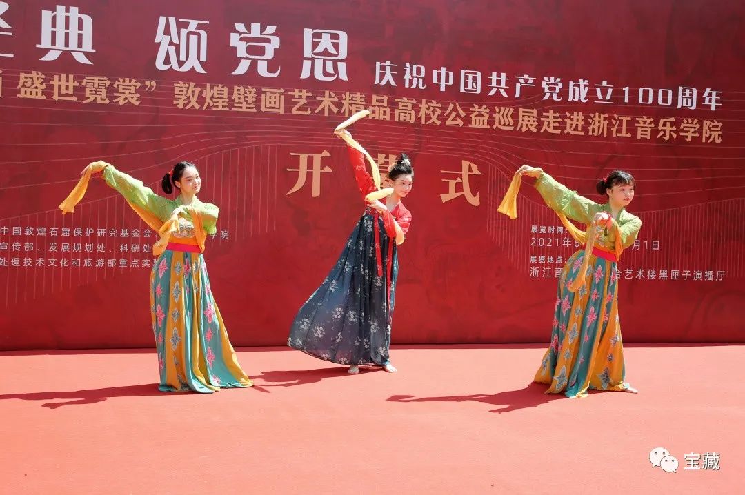 2021年6月6日,“傳經(jīng)典,頌黨恩——慶祝中國共產(chǎn)黨成立100周年系列活動(dòng)”之“石室音畫,盛世霓裳——敦煌壁畫藝術(shù)精品高校公益巡展”在浙江音樂學(xué)院盛大啟幕。