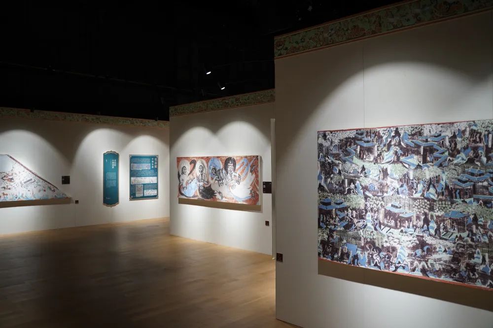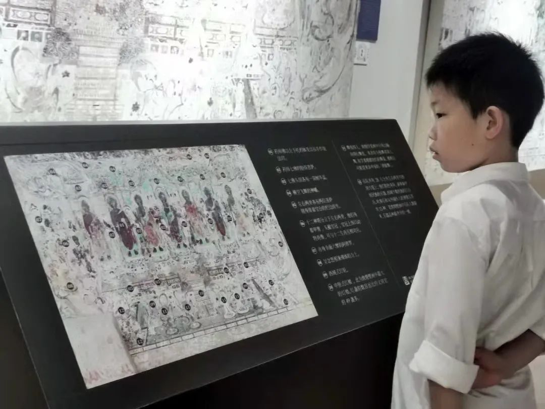 本次巡展精選敦煌石窟數(shù)字化成果高保真復(fù)制壁畫精品67幅、復(fù)原洞窟3個(gè)、彩塑復(fù)制品2尊、敦煌藏經(jīng)洞出土文獻(xiàn)復(fù)制品10件、反映敦煌莫高窟歷史風(fēng)貌及保護(hù)歷程的老照片26件,以及生動(dòng)詮釋敦煌藝術(shù)的動(dòng)漫、影視等多媒體作品、紀(jì)錄片,并于入口特設(shè)“時(shí)空隧道”,通過沉浸式技術(shù)形成身臨其境的體驗(yàn)場景。同時(shí),配備智能語音導(dǎo)覽系統(tǒng),利用VR虛擬漫游技術(shù)真實(shí)再現(xiàn)洞窟實(shí)景,并開設(shè)敦煌學(xué)專家講座等,全方位助力青年學(xué)子深度體悟敦煌精神。
