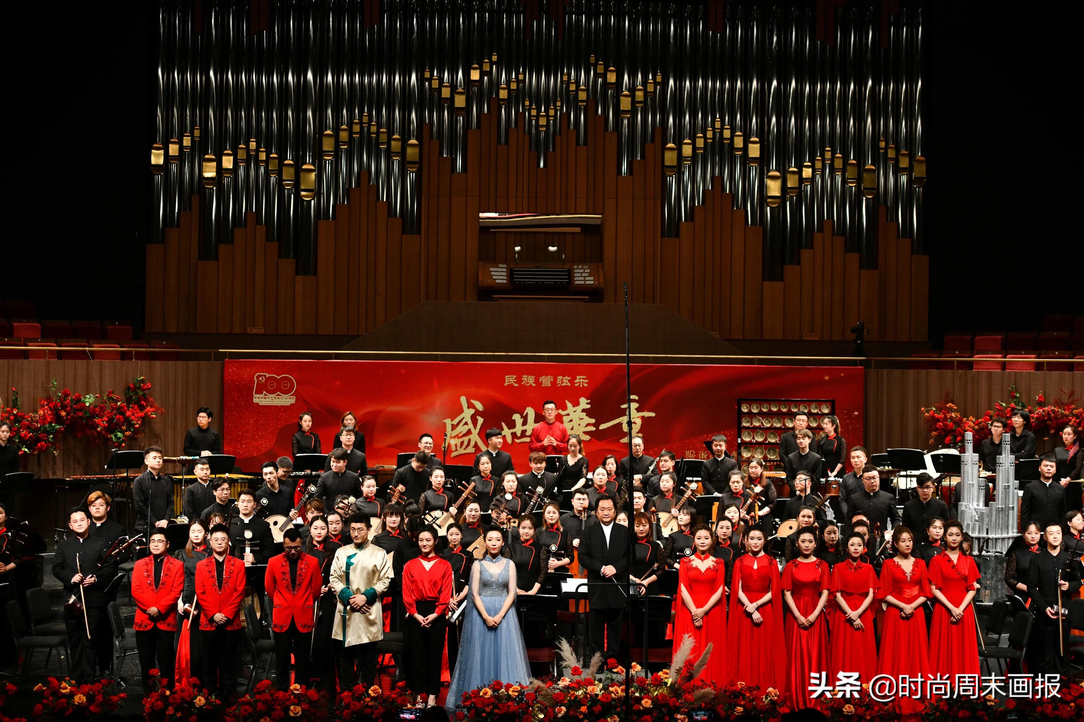 6月9日晚,2020年度浙江省舞臺(tái)藝術(shù)創(chuàng)作重點(diǎn)題材扶持項(xiàng)目、浙江音樂(lè)學(xué)院2021年創(chuàng)表重點(diǎn)項(xiàng)目,民族管弦樂(lè)《盛世華章》在浙江音樂(lè)學(xué)院周穎音樂(lè)廳隆重上演。此次演出由浙江音樂(lè)學(xué)院主辦,南京民族樂(lè)團(tuán)與浙音民族樂(lè)隊(duì)學(xué)院合作呈現(xiàn)。來(lái)自中國(guó)歌劇舞劇院、北京民族樂(lè)團(tuán)、河北歌舞劇院、浙江歌舞劇院等近10所歌舞劇院、民族樂(lè)團(tuán)的團(tuán)長(zhǎng)觀看了演出。