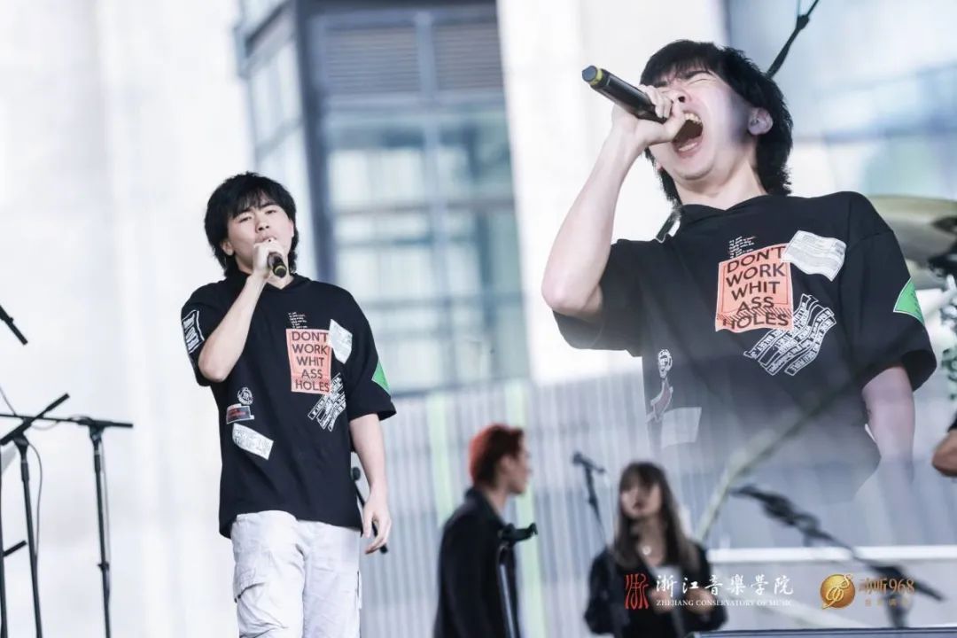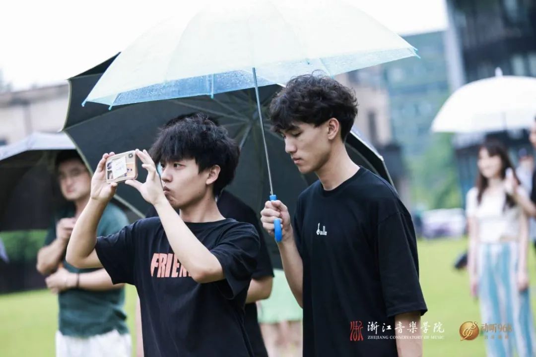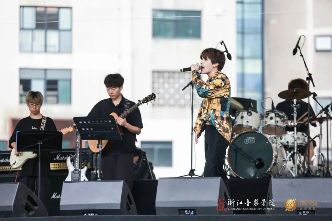 從崔健的《假行僧》到黑豹樂隊(duì)《dont break my heart》再到beyond樂隊(duì)的《海闊天空》,熟悉的旋律瞬間把大家?guī)Щ氐侥莻€(gè)眾星璀璨的搖滾年代。文彥杰、酒心女子樂隊(duì)、胡谷晟……來自浙江音樂學(xué)院流行音樂系的新生代音樂人輪番登場(chǎng),以飽滿的熱情為現(xiàn)場(chǎng)觀眾帶來一場(chǎng)酣暢淋漓的演繹。音樂會(huì)的最高潮是《我愛你中國(guó)》的旋律響起,臺(tái)下200位觀眾在雨中齊聲高歌,“ 我愛你中國(guó),心愛的母親,我為你流淚,也為你自豪…… ”在歌聲中憶往昔崢嶸歲月,在歌聲中看今朝旖旎風(fēng)光,用年輕的歌聲致敬經(jīng)典,慶祝建黨100周年。
