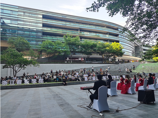 6月13日下午,端午節(jié)小長(zhǎng)假的第二天,藝創(chuàng)小鎮(zhèn) · 鳳凰創(chuàng)意國(guó)際的大草坪上,致敬經(jīng)典——2021第三屆之江國(guó)際青年藝術(shù)周華語搖滾專場(chǎng)音樂會(huì)在雨中開唱。