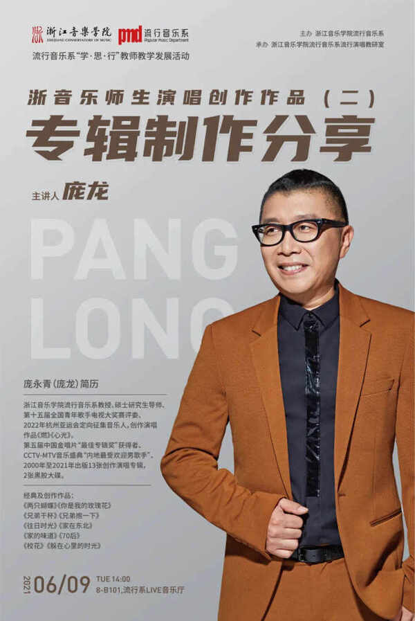 作為浙音流行音樂系教授、碩士研究生導(dǎo)師的龐龍,是2022年杭州亞運(yùn)會定向征集音樂人,創(chuàng)作演唱作品《燃》《心光》,同時也是第五屆中國金唱片“最佳專輯獎”獲得者,2000年至2021年出版13張創(chuàng)作演唱專輯、2張黑膠大碟。