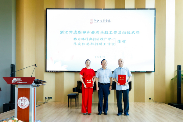 6月23日,浙江非遺劇種和曲牌搶救工作啟動儀式暨林為林戲曲創(chuàng)研推廣中心、陳曉紅越劇創(chuàng)研工作室掛牌儀式在浙江音樂學院舉行。