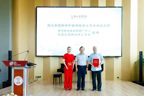 6月23日,浙江非遺劇種和曲牌搶救工作啟動(dòng)儀式暨林為林戲曲創(chuàng)研推廣中心、陳曉紅越劇創(chuàng)研工作室掛牌儀式在浙江音樂學(xué)院舉辦。