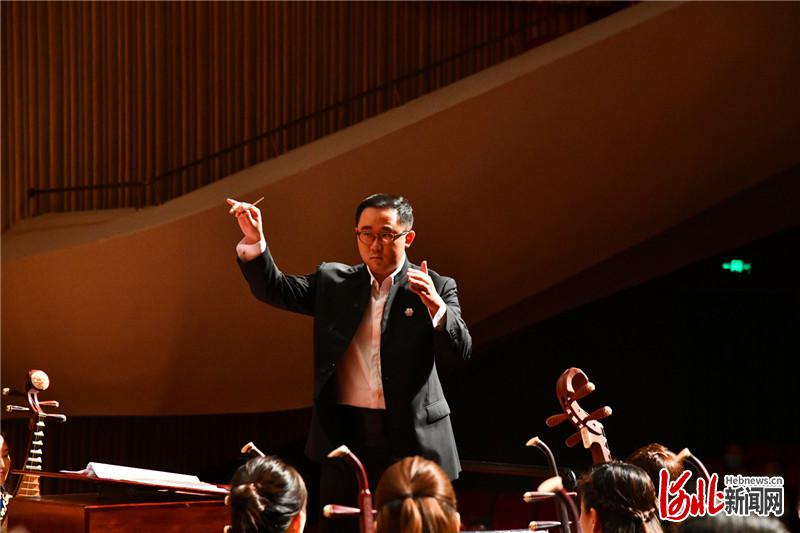 6月30日晚,大型民族管弦樂(lè)《團(tuán)結(jié)就是力量》在河北省藝術(shù)中心音樂(lè)廳激情奏響。圖為馬帥指揮。王建 攝