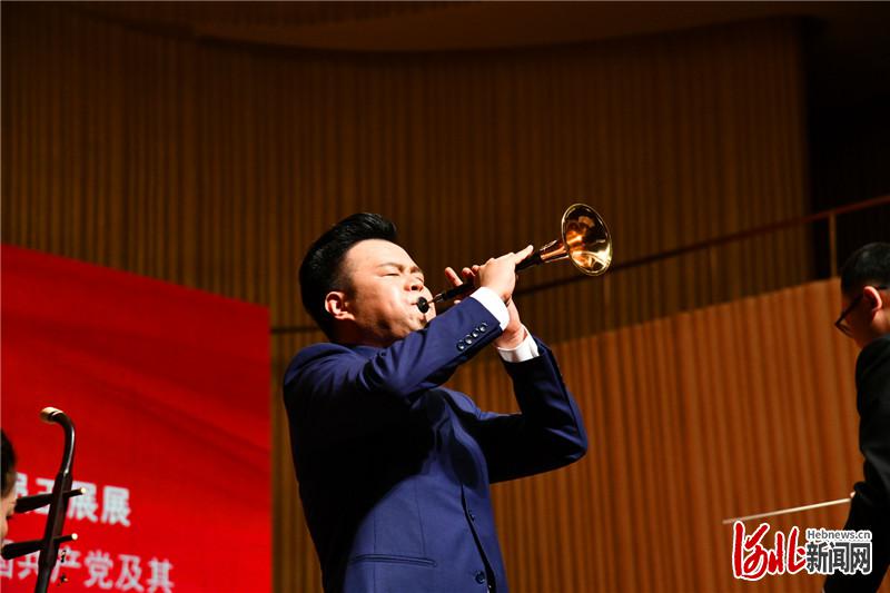 6月30日晚,大型民族管弦樂(lè)《團(tuán)結(jié)就是力量》在河北省藝術(shù)中心音樂(lè)廳激情奏響。圖為魏思駿演奏。王建 攝
