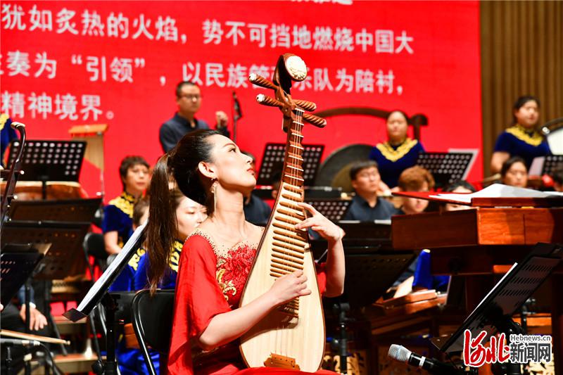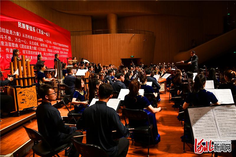 6月30日晚,大型民族管弦樂(lè)《團(tuán)結(jié)就是力量》在河北省藝術(shù)中心音樂(lè)廳激情奏響。圖為張?jiān)佉粞葑?。王?攝