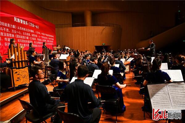 6月30日晚,大型民族管弦樂(lè)《團(tuán)結(jié)就是力量》在河北省藝術(shù)中心音樂(lè)廳激情奏響。圖為演出現(xiàn)場(chǎng)。王建 攝