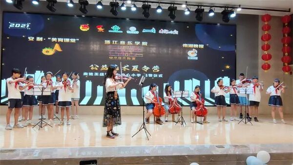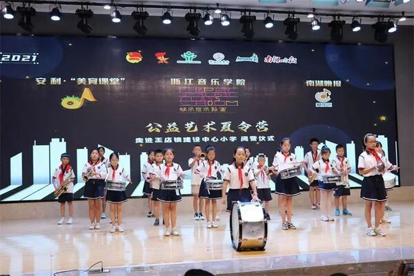2015年1月1日,“愛(ài)加藝”藝術(shù)公益項(xiàng)目正式啟動(dòng),2015年夏天,安利公司帶來(lái)了“快樂(lè)音樂(lè)教室”公益項(xiàng)目,在浙江省青基會(huì)、嘉興團(tuán)市委、秀洲團(tuán)區(qū)委等的關(guān)心支持下,兩個(gè)公益項(xiàng)目合作為嘉興王店建設(shè)中心小學(xué)、新塍新農(nóng)小學(xué)、南湖區(qū)余新中心小學(xué)幾所小學(xué)帶去了“藝術(shù)教室”的藝術(shù)教具配備。2017年開(kāi)始,藝術(shù)支教夏令營(yíng)開(kāi)始和王店建設(shè)中心小學(xué)有了關(guān)于夏天的約定。