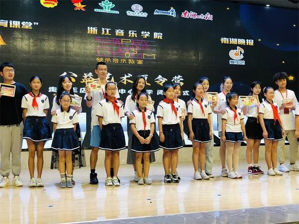 7月18日,經(jīng)過(guò)9天的陪伴,浙江音樂(lè)學(xué)院的9名大學(xué)生志愿者和嘉興市秀洲區(qū)王店鎮(zhèn)建設(shè)中心小學(xué)30多名孩子,在建設(shè)中心小學(xué)的禮堂里聯(lián)袂送上一場(chǎng)結(jié)營(yíng)演出。